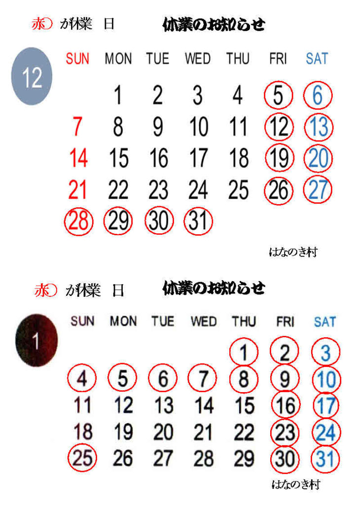 12月~1月の年末年始のお休み お知らせ 2025.12.10 年末年始の休業日は以下の通りです。 12月26日(金)〜1月10日(土) 1月25日(日) 新年は 1月11日(日)より皆さまのご来店をお待ちしております。どうぞ良いお年をお迎えください。